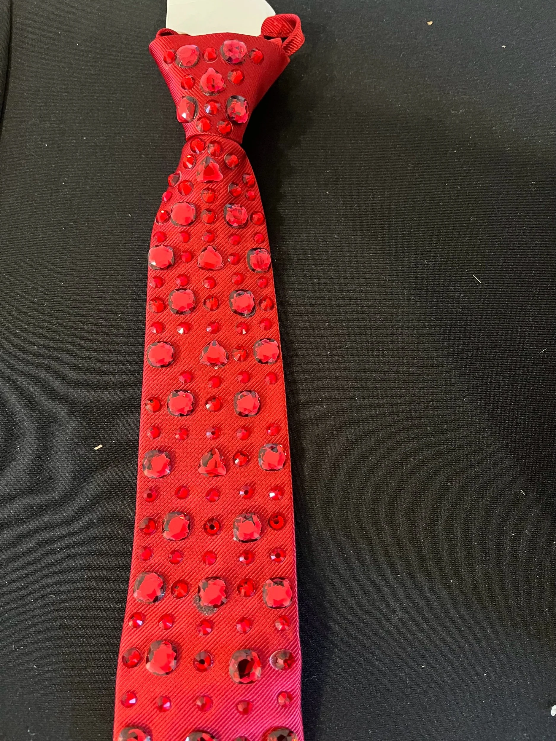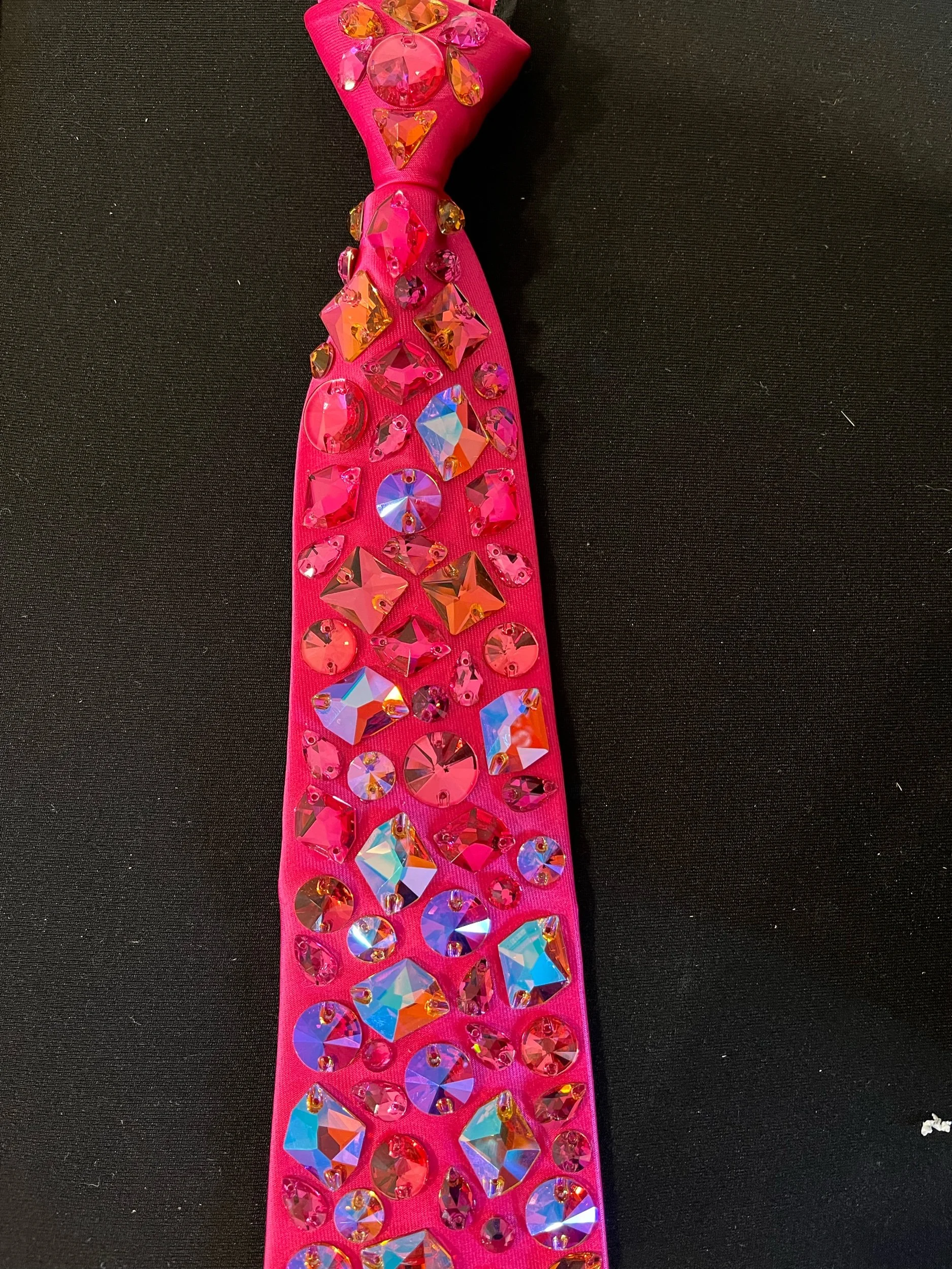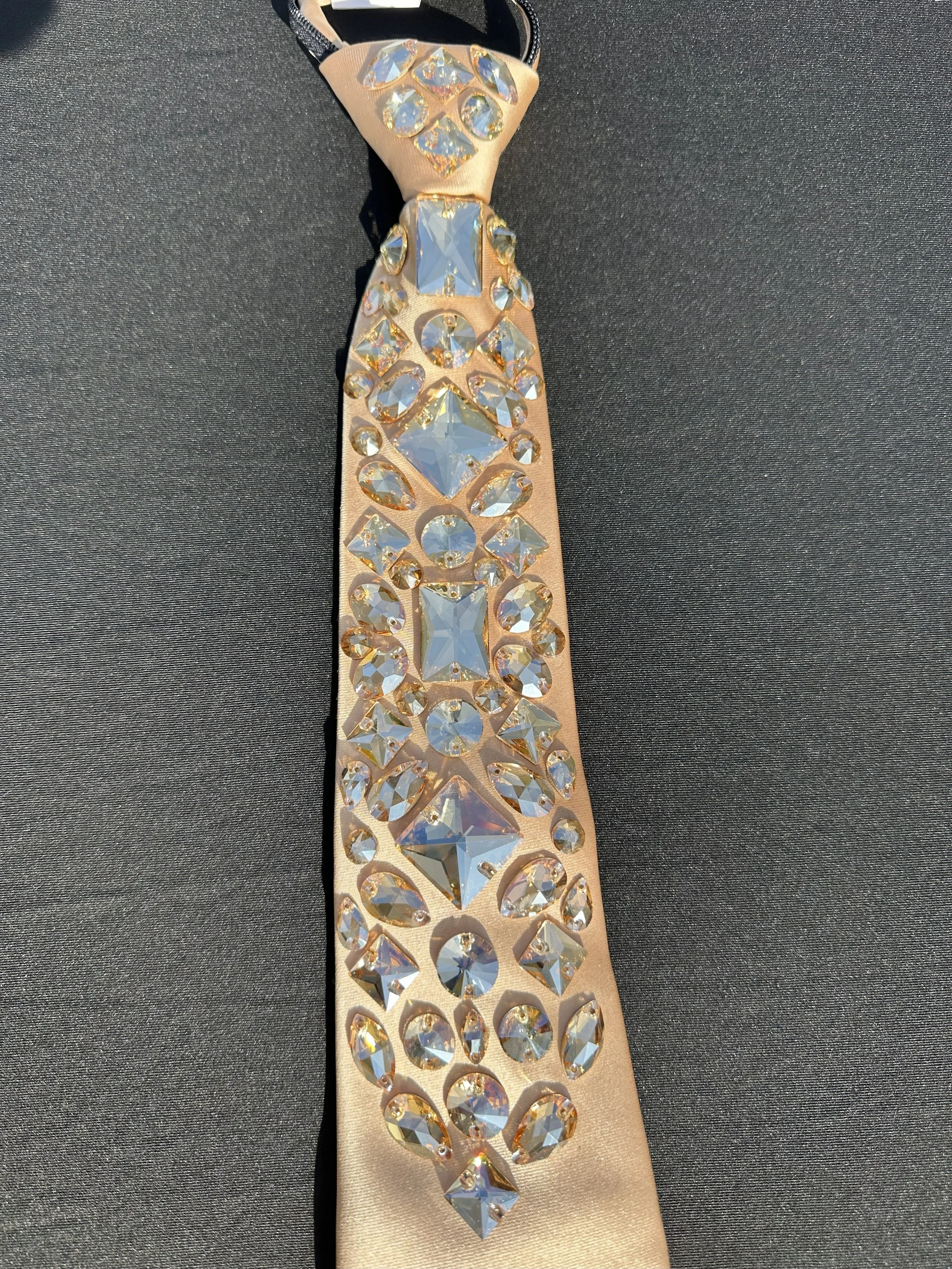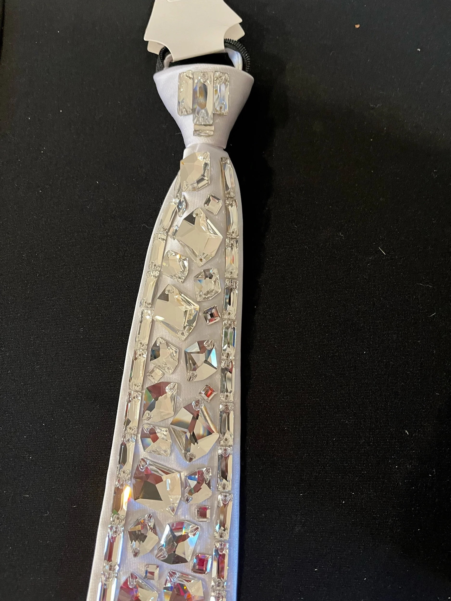 Boys 20” competition blinged tie customer adorned with Australian crystals to help accentuate the shine on stage with a competition vest or jacket. Any tie option can be customized to match each dancer’s costume.