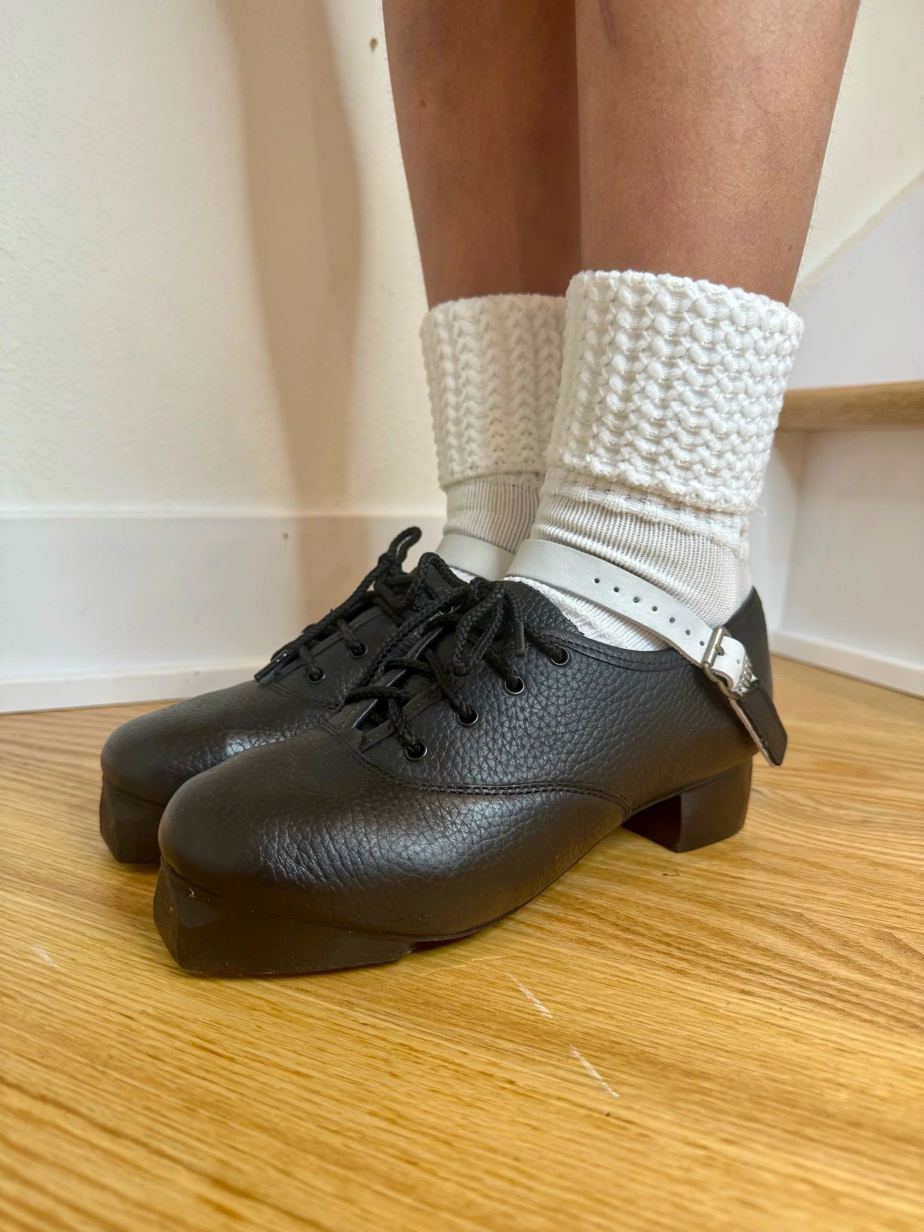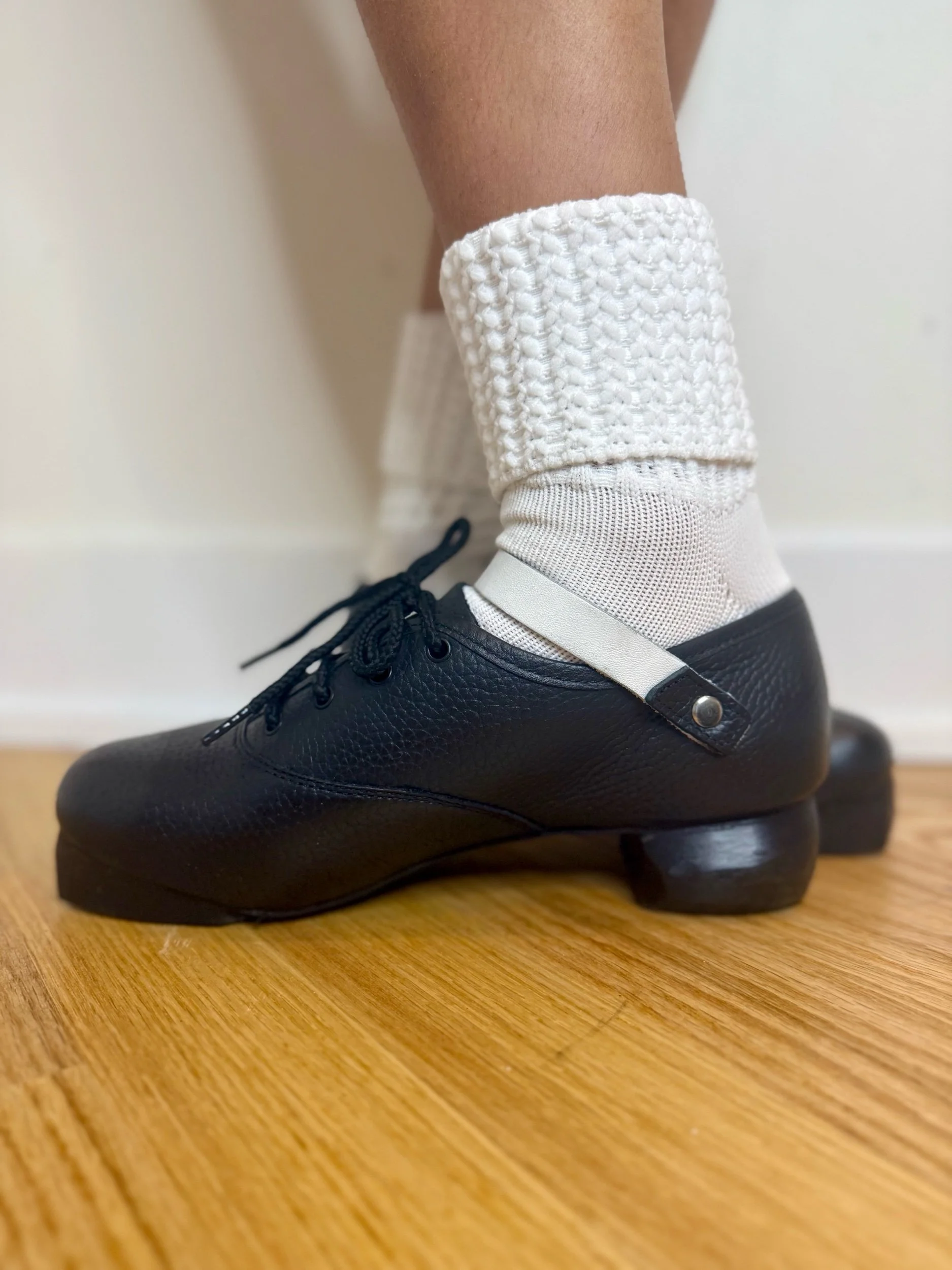 The Flexi Pro is essentially a heavy shoe but with untold flexibility. Wearing Flexi Pro means no blisters and virtually no breaking in time. They come complete with the thunder tip and the Atlantic Bróg heels. They also have the white Atlantic Bróg shaped strap, which can be changed for boys or festival dancers if needed. These are without doubt the best shoes on the market.